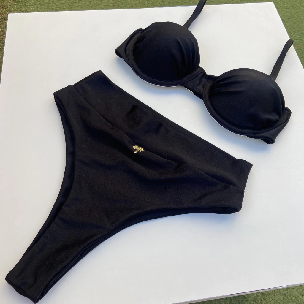 Características: Possui aro de sustentação; acompanha bojo removível; alças reguláveis; calcinha modelo hot pant